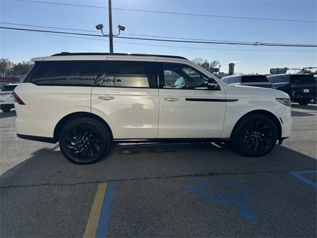 Pristine White Metallic Tri-Coat 2025 Lincoln Navigator Reserve 4WD 10-Speed Automatic 3.5L V6 4WD, Black Onyx Leather.