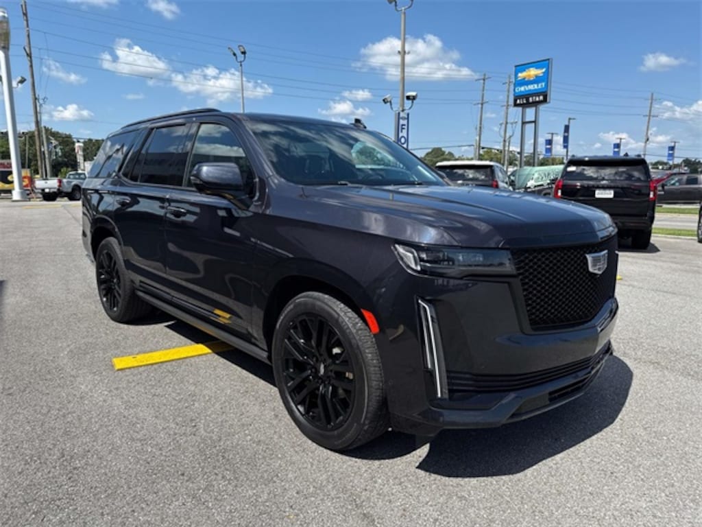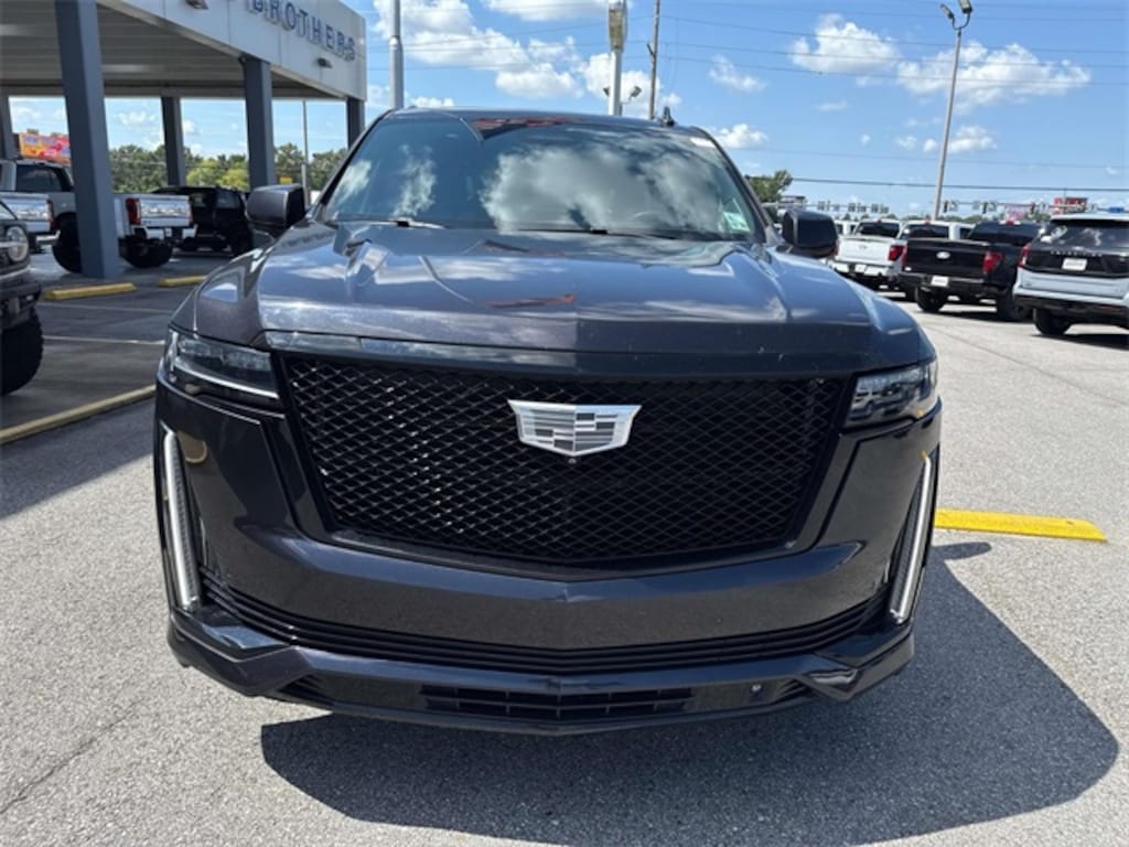 Robinson Brothers Ford Lincoln specializes in one owner lease returns and trade in vehicles - not cars from rental companies! We believe it is a much better value for your money to purchase a one owner lease return or a customer trade-in as opposed to rental units that have not been taken care of! We offer a complimentary vehicle history report on all of our vehicles! Buy with confidence! Interior Protection Package (LPO) (1st 2nd & 3rd Row All-Weather Floor Mats (LPO) and All-Weather Integrated Cargo Liner (LPO)), Onyx Package (LPO) (Gloss Black Escalade Nameplate (LPO), Monochrome Cadillac Emblems (LPO), Puddle Lamps w/Cadillac Crest (LPO), Wheels: 22" 12-Spoke Gloss Black Alloy (LPO), and Wheels: 22" Interim (LPO)), Preferred Equipment Group 1SC (Adaptive Cruise Control, AKG Studio 19-Speaker Audio System, Automatic Seat Belt Tightening, Automatic Stop/Start, Body-Color Door Handles, Door Lock & Latch Shields, Electronic Limited-Slip Differential, Enhanced Automatic Emergency Braking, Enhanced Automatic Parking Assist, Glass Breakage Sensor, Hitch Guidance w/Hitch View, Integrated Trailer Brake Controller, Power Panoramic Tilt-Sliding Sunroof, Rear Camera Mirror, Rear Camera Mirror Washer, Rear Cross Traffic Alert, Reconfigurable Full-Color Head-Up Display, Reverse Automatic Braking, Running Board Assist Steps, Smart Trailer Integration Indicator, Start/Stop System Disable Button, Theft-Deterrent Alarm System, Trailer Side Blind Zone Alert, Vehicle Inclination Sensor, and Vehicle Interior Movement Sensor), Touring Package (Air Ride Adaptive Suspension, Illuminating Front & Rear Sill Plates, and Soft Closing Front & Rear Doors), Black Leather, Navigation System, 16.9" Diagonal OLED Infotainment Screen, 19 Speakers, 2-Presets Memory For Driver Seat Adjuster, 3.23 Axle Ratio, 3rd row seats: split-bench, 4-Wheel Disc Brakes, 8-Way Power Driver Seat Adjuster, 8-Way Power Front Passenger Seat Adjuster, ABS brakes, Adaptive suspension, Air Conditioning, AKG Studio Reference 36-Speaker Audio System, Alloy wheels, AM/FM radio: SiriusXM with 360L, Apple CarPlay/Android Auto, Audio memory, Auto High-beam Headlights, Auto tilt-away steering wheel, Auto-dimming door mirrors, Auto-dimming Rear-View mirror, Automatic temperature control, Brake assist, Bumpers: body-color, Compass, Delay-off headlights, Driver door bin, Driver vanity mirror, Dual front impact airbags, Dual front side impact airbags, Electronic Stability Control, Emergency communication system: OnStar and Cadillac connected services capable, Four wheel independent suspension, Front anti-roll bar, Front Bucket Seats, Front Center Armrest w/Storage, Front dual zone A/C, Front reading lights, Fully automatic headlights, Garage door transmitter, HD Radio, Heads-Up Display, Heated & Ventilated Driver & Front Passenger Seats, Heated door mirrors, Heated Driver & Front Passenger Seats, Heated front seats, Heated rear seats, Heated steering wheel, Illuminated entry, Leather Seating Surfaces w/Precision Perf Inserts, Leather steering wheel, Low tire pressure warning, Magnetic Ride Control Suspension, Memory seat, Night Vision, Not Equipped w/4-Way Driver & Fr Pass Pwr Lumbar, Not Equipped w/Steering Column Lock, Occupant sensing airbag, Outside temperature display, Overhead airbag, Overhead console, Panic alarm, Passenger door bin, Passenger vanity mirror, Power door mirrors, Power driver seat, Power Liftgate, Power moonroof, Power passenger seat, Power steering, Power windows, Power-Retractable Assist Steps, Radio data system, Radio: AM/FM/SiriusXM w/Navigation, Rain sensing wipers, Rear air conditioning, Rear anti-roll bar, Rear reading lights, Rear Seat Entertainment System (DISC), Rear window def