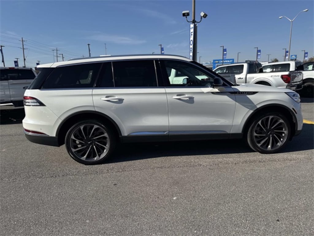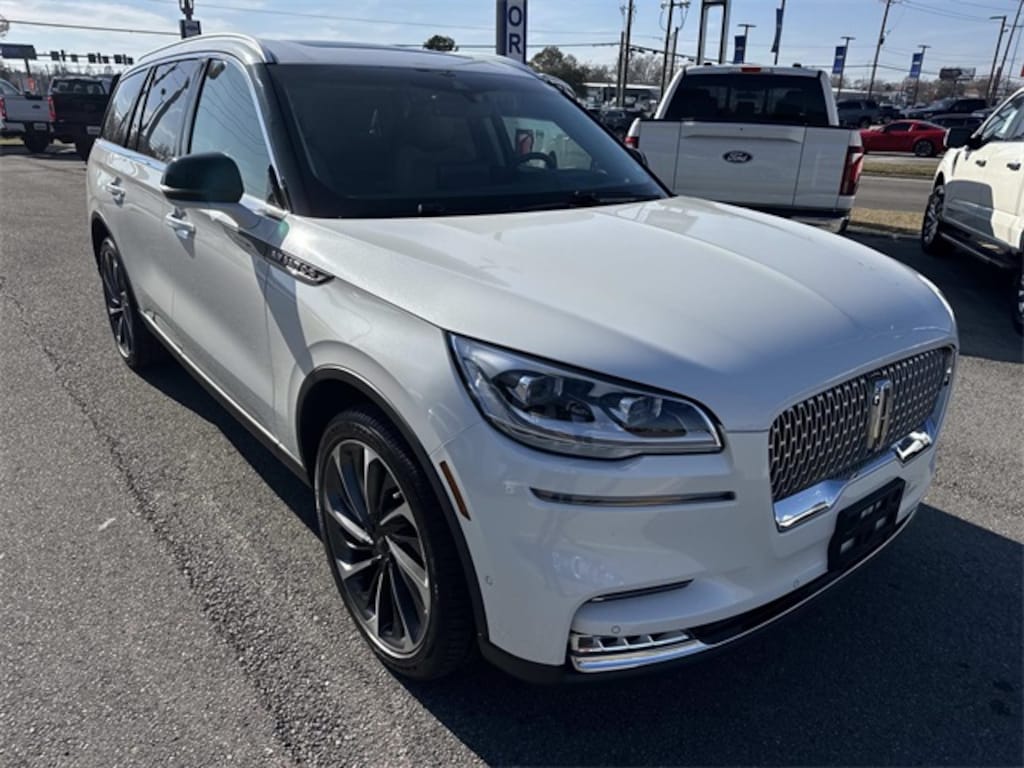 Robinson Brothers Ford Lincoln specializes in one owner lease returns and trade in vehicles - not cars from rental companies! We believe it is a much better value for your money to purchase a one owner lease return or a customer trade-in as opposed to rental units that have not been taken care of! We offer a complimentary vehicle history report on all of our vehicles! Buy with confidence! Class IV Trailer Tow Package (250 Amps Alternator, 4-Pin & 7-Pin Connectors, Blind Spot Detection w/Cross Traffic Alert, Class IV Hitch & Wiring, Smart Trailer Tow, and Trailer Sway Control), Convenience Package (Head-Up Display, Phone As A Key, Soft Close Doors, and Wireless Charging Pad), Dynamic Handling Package (Adaptive Steering, Adaptive Suspension w/Road Preview, and Air Glide Suspension w/Dynamic Lower Entry), Elements Package Plus (Heated Steering Wheel, Heated VisioBlade Wipers, Heated/Ventilated 2nd Row Outboard Seats, and Heated/Ventilated Driver & Passenger Seats), Equipment Group 202A (Panoramic Vista Roof w/Power Shade and Wheels: 22" Ultra Bright Machined Aluminum), Illumination Package (Adaptive Pixel LED Headlamps and Lincoln Lit Star in Grille), Lincoln Co-Pilot360 Plus (Active Park Assist Plus, Adaptive Cruise Control w/Traffic Jam Assist, Evasive Steering Assist, and Reverse Brake Assist), Luxury Package (30-Way Perfect Position Seats w/Active Motion, Radio: Revel Ultima 3D Audio System w/28 Speakers, and Rear Door Sunshades), Navigation System, 14 Speakers, 3.58 Axle Ratio, 3rd row seats: split-bench, 4-Wheel Disc Brakes, ABS brakes, Adaptive suspension, Air Conditioning, Alloy wheels, AM/FM radio: SiriusXM, Audio memory, Auto High-beam Headlights, Auto-dimming door mirrors, Auto-dimming Rear-View mirror, Automatic temperature control, Brake assist, Bumpers: body-color, Cargo Area Protector (Dealer Installed), Compass, Delay-off headlights, Driver door bin, Driver vanity mirror, Dual front impact airbags, Dual front side impact airbags, Electronic Stability Control, Emergency communication system: SYNC 3 911 Assist, Four wheel independent suspension, Front anti-roll bar, Front Bucket Seats, Front Center Armrest, Front dual zone A/C, Front fog lights, Front reading lights, Fully automatic headlights, Garage door transmitter, Heated door mirrors, Heated front seats, HVAC memory, Illuminated entry, Knee airbag, Lincoln Play Rear Seat Entertainment System, Low tire pressure warning, Memory seat, Occupant sensing airbag, Outside temperature display, Overhead airbag, Overhead console, Panic alarm, Passenger door bin, Passenger vanity mirror, Power door mirrors, Power driver seat, Power Liftgate, Power passenger seat, Power steering, Power windows, Premium Leather Enhanced Micro-Perforated Seats, Radio data system, Radio: Revel AM/FM Audio System w/14 Speakers, Rain sensing wipers, Rear air conditioning, Rear anti-roll bar, Rear audio controls, Rear dual zone A/C, Rear reading lights, Rear window defroster, Rear window wiper, Remote keyless entry, Security system, SiriusXM Radio, Speed control, Speed-Sensitive Wipers, Split folding rear seat, Spoiler, Steering wheel memory, Steering wheel mounted A/C controls, Steering wheel mounted audio controls, SYNC 3 Communication & Entertainment System, Tachometer, Telescoping steering wheel, Tilt steering wheel, Traction control, Trip computer, Turn signal indicator mirrors, Variably intermittent wipers, Ventilated front seats, and Wheels: 20" Bright Machined Aluminum.