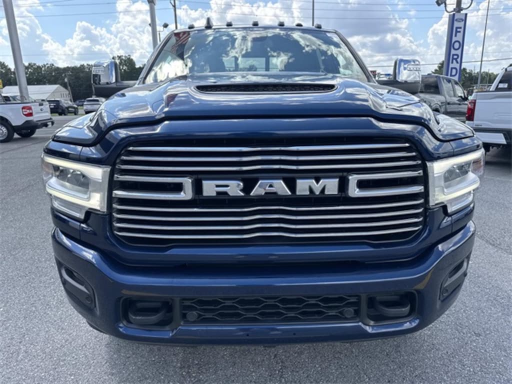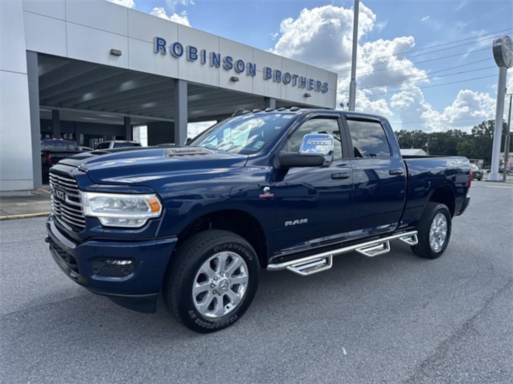 Robinson Brothers Ford Lincoln specializes in one owner lease returns and trade in vehicles - not cars from rental companies! We believe it is a much better value for your money to purchase a one owner lease return or a customer trade-in as opposed to rental units that have not been taken care of! We offer a complimentary vehicle history report on all of our vehicles! Buy with confidence! Laramie Level 1 Equipment Group (12" Touchscreen Display, 2nd Row In Floor Storage Bins, 4G LTE Wi-Fi Hot Spot, Alexa Built-In, Apple CarPlay, Auto Adjust In Reverse Exterior Mirrors, Auto Dim Exterior Mirror, Auto High Beam Headlamp Control, Auto Power-Folding Mirrors, Auto-Dimming Exterior Passenger Mirror, Blind Spot & Cross Path Detection, Center Hub, Chrome Exterior Mirrors, Connected Travel & Traffic Services, Connectivity - US/Canada, Disassociated Touchscreen Display, Exterior Mirrors Courtesy Lamps, Exterior Mirrors w/Heating Element, Exterior Mirrors w/Memory, Exterior Mirrors w/Supplemental Signals, Foam Bottle Insert (Door Trim Panel), For Details, Visit DriveUconnect.com, For More Info, Call 800-643-2112, Forward & Reverse Utility Lights, Front LED Fog Lamps, Global Telematics Box Module (TBM), Google Android Auto, GPS Antenna Input, GPS Navigation, HD Radio, Integrated Voice Command w/Bluetooth, LED Reflector Headlamps, LED Tail Lamps, Mirror Running Lights, Off-Road Information Pages, ParkSense Front/Rear Park Assist System, Power Adjust Mirrors, Power Adjustable Convex Aux Mirrors, Power Adjustable Pedals w/Memory, Power Heated Fold Telescopic Mirrors w/Memory, Power Telescoping Mirrors, Radio: Uconnect 5 Nav w/12.0" Display, Rain Sensitive Windshield Wipers, Rear Power Sliding Window, Rear Window Defroster, Remote Tailgate Release, Selectable Tire Fill Alert, SiriusXM Radio Service, SiriusXM w/360L, Trailer Tow Pages, and Wheels: 18" x 8.0" Polished Aluminum), Protection Group (Tow Hooks), Quick Order Package 2HH Laramie, Sport Appearance Package (20" x 8.0" Polished Aluminum Wheels, Black Interior Accents, Body Color Grille Surround, Sport Decal, and Sport Performance Hood), 10 Speakers, 115V Auxiliary Rear Power Outlet, 2 Way Rear Headrest Seat, 220 Amp Alternator, 3.73 Axle Ratio, 4 Way Front Headrests, 4-Wheel Disc Brakes, 5th Wheel/Gooseneck Towing Prep Group, ABS brakes, Active Noise Control System, Air Conditioning, Alloy wheels, AM/FM radio: SiriusXM with 360L, Apple CarPlay/Android Auto, Automatic temperature control, Brake assist, Bumpers: body-color, Clearance Lamps, Compass, Delay-off headlights, Driver door bin, Driver vanity mirror, Dual front impact airbags, Dual front side impact airbags, Electronic Stability Control, Electronically Controlled Throttle, Front anti-roll bar, Front Center Armrest w/Storage, Front dual zone A/C, Front reading lights, Front Seat Back Map Pockets, Fully automatic headlights, Garage door transmitter, Heated door mirrors, Heated Front Seats, Heated front seats, Heated Steering Wheel, Heated steering wheel, Illuminated entry, Leather steering wheel, Leather Trim 40/20/40 Bench Seat, Low tire pressure warning, MOPAR Spray In Bedliner, Navigation System, Occupant sensing airbag, Outside temperature display, Overhead airbag, Overhead console, Panic alarm, ParkView Rear Back-Up Camera, Passenger door bin, Passenger vanity mirror, Power 2-Way Driver Lumbar Adjust, Power 2-Way Passenger Lumbar Adjust, Power Adjust 8-Way Driver Seat, Power Adjust 8-Way Front Passenger Seat, Power door mirrors, Power driver seat, Power passenger seat, Power steering, Power windows, Radio data system, Rear 60/40 Folding Seat, Rear anti-roll bar, Rear reading lights, Rear seat center armrest, Rear step bumper, Rear window defroster, Remote keyless entry, Security system, Speed control, Split folding rear seat, Steering wheel m